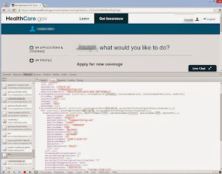 Healthcare.gov does not only use data from other sources to verify information, it returns that information to the web browser. Here is some of the data returned to the web browser that I did not enter. This is data retrieved from other systems and returned to my web browser while I was filling out an insurance application on the Healthcare.gov Insurance Marketplace -- also known as "The Hub".